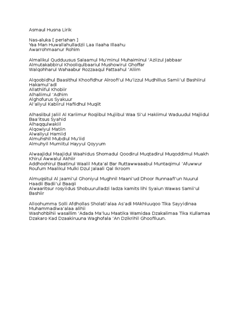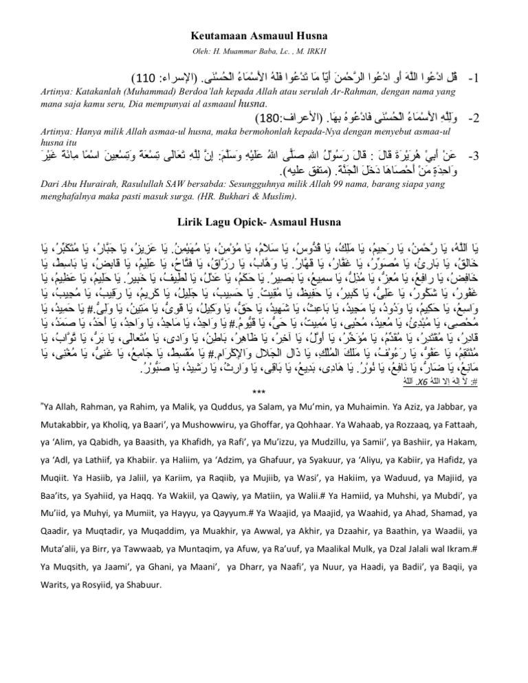 1 from Sifat allah ini sangat baik diucapkan ketika manusia memohon doa kepada allah. Blog lirik lagu ini tidak menyediakan sebarang link untuk download lagu mp3 * dari * samada dalam format mp3 atau sebarang format audio yang lain. Asmaul husna (99 nama allah). Lirik asmaul husna terbaru gratis dan mudah dinikmati. Asmaul husna (lirik & terjemahan) by maghfirah m hussein original song: 26 july 2019 / ini manfaat. Urutan 99 nama allah (asmaul husna) dan artinya 1. Lirik lagu asmaul husna versi sholawat badar mp3 duration 8:44 size 19.99 mb / kumpulan ceramah nu 4.