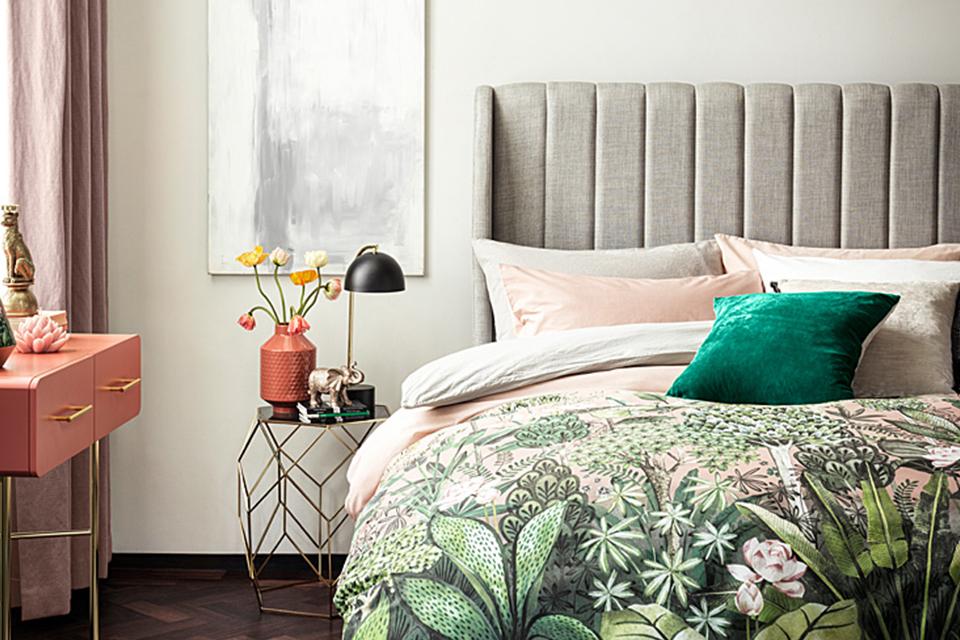 The bed is the focal point but the desk is a stylish addition to space—it adds practicality and makes good use of wall space.